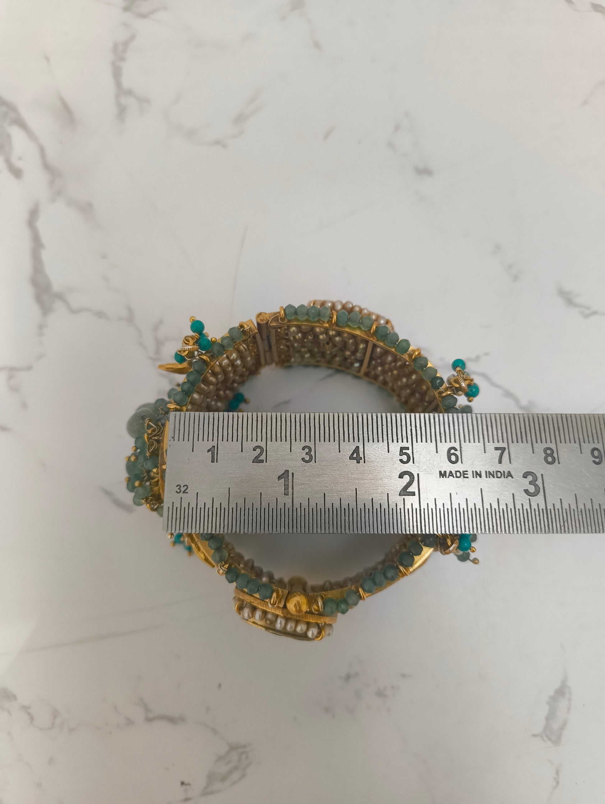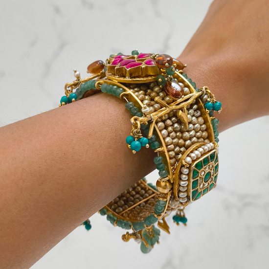Colourfull Bridal Kada with Pink stones and Green Beads| 925 Sterling Silver | 24k Gold Vermeil Polish | 113.58g