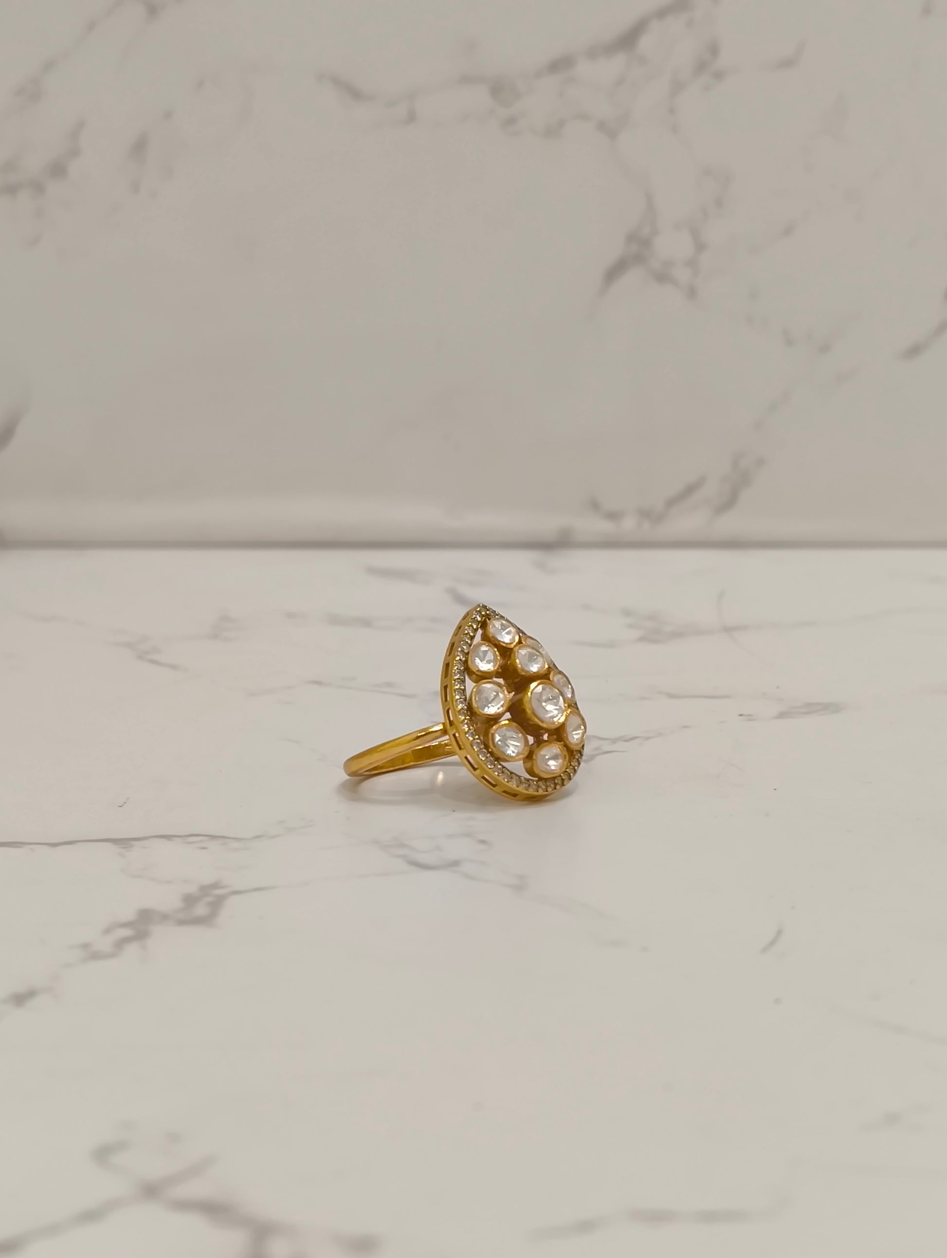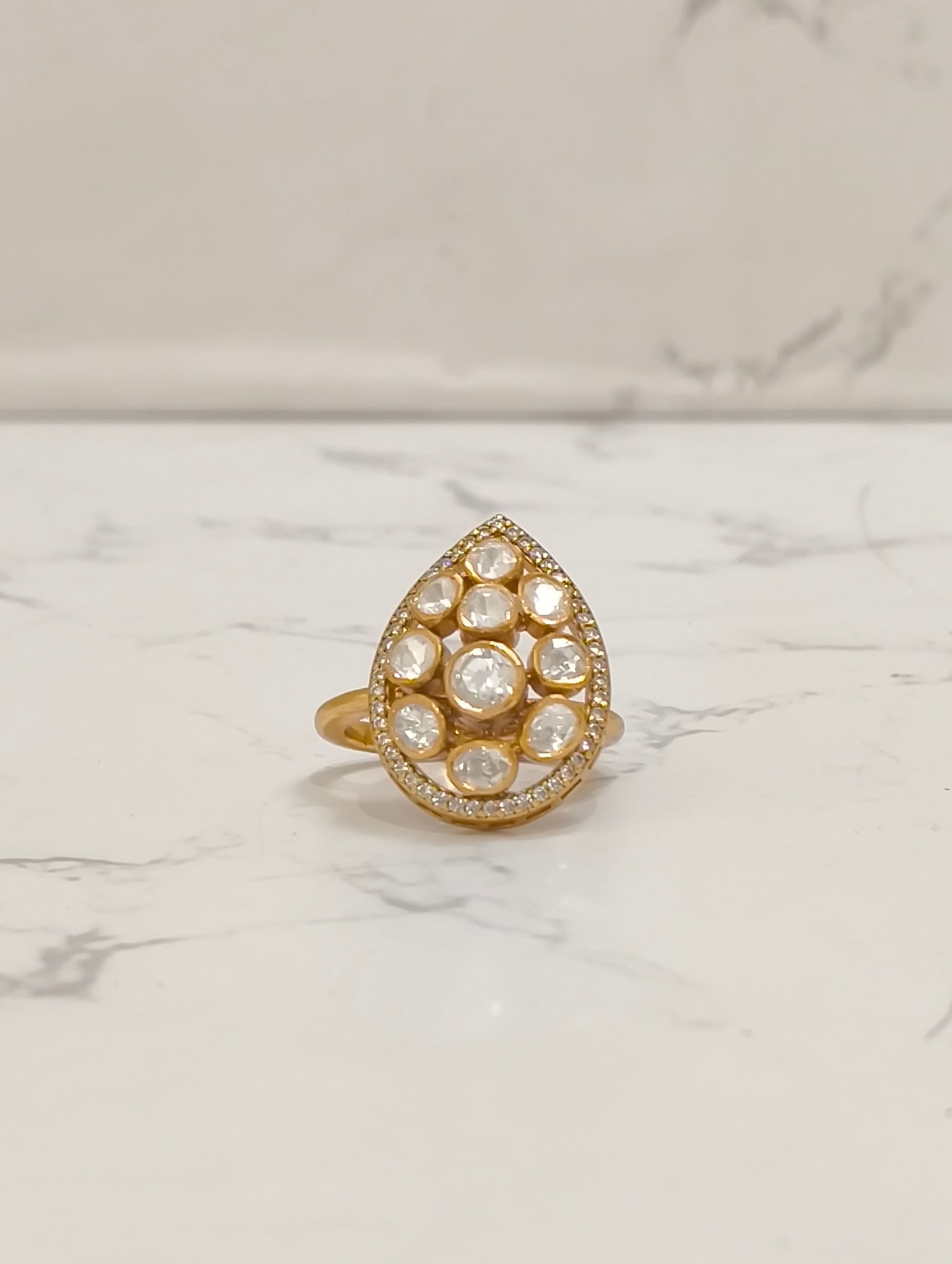 Gold Polish Moissanite Polki Bridal Ring | 925 Sterling Silver | 24k Gold Vermeil Polish | 11.33g