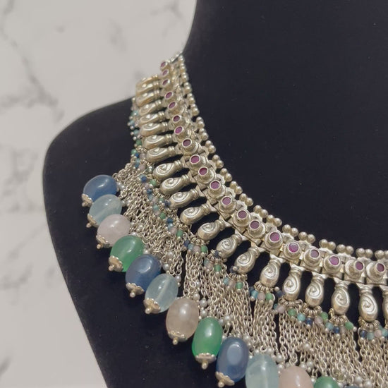 Multicolour Stone Necklace | 925 Sterling Silver | 138.90g