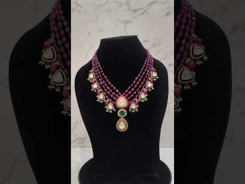 Pink Beads Moissanite Bridal Necklace | 925 Sterling Silver | 24K Gold Vermeil Polish | 98.57g