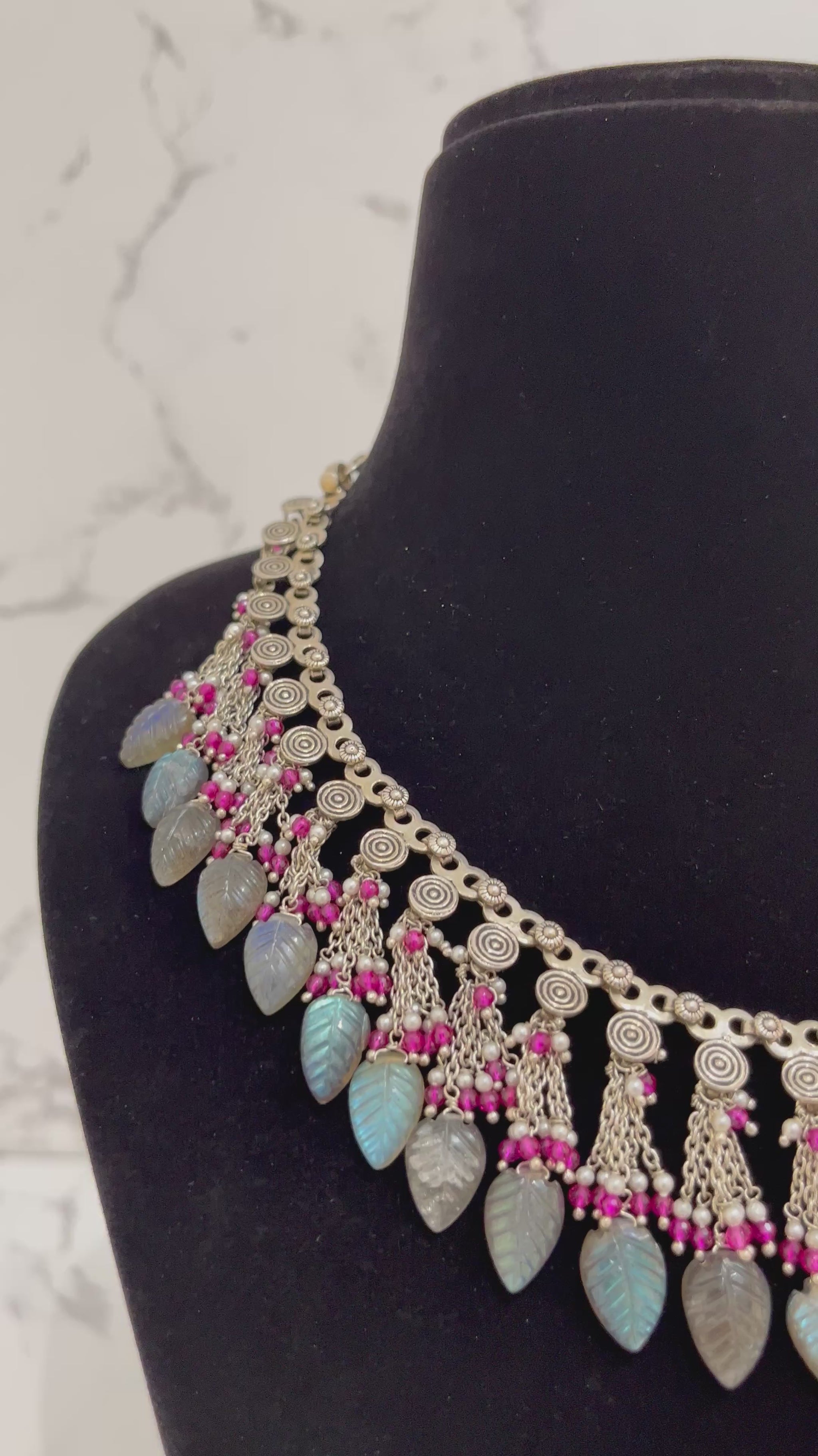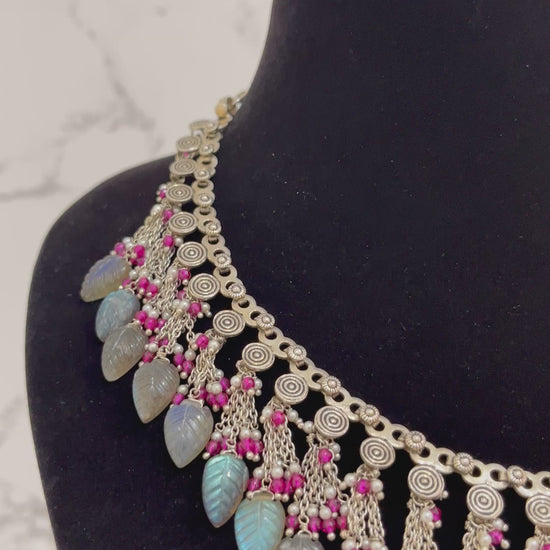 Leaf Motif Indian Necklace | 925 Sterling Silver | 68.81g