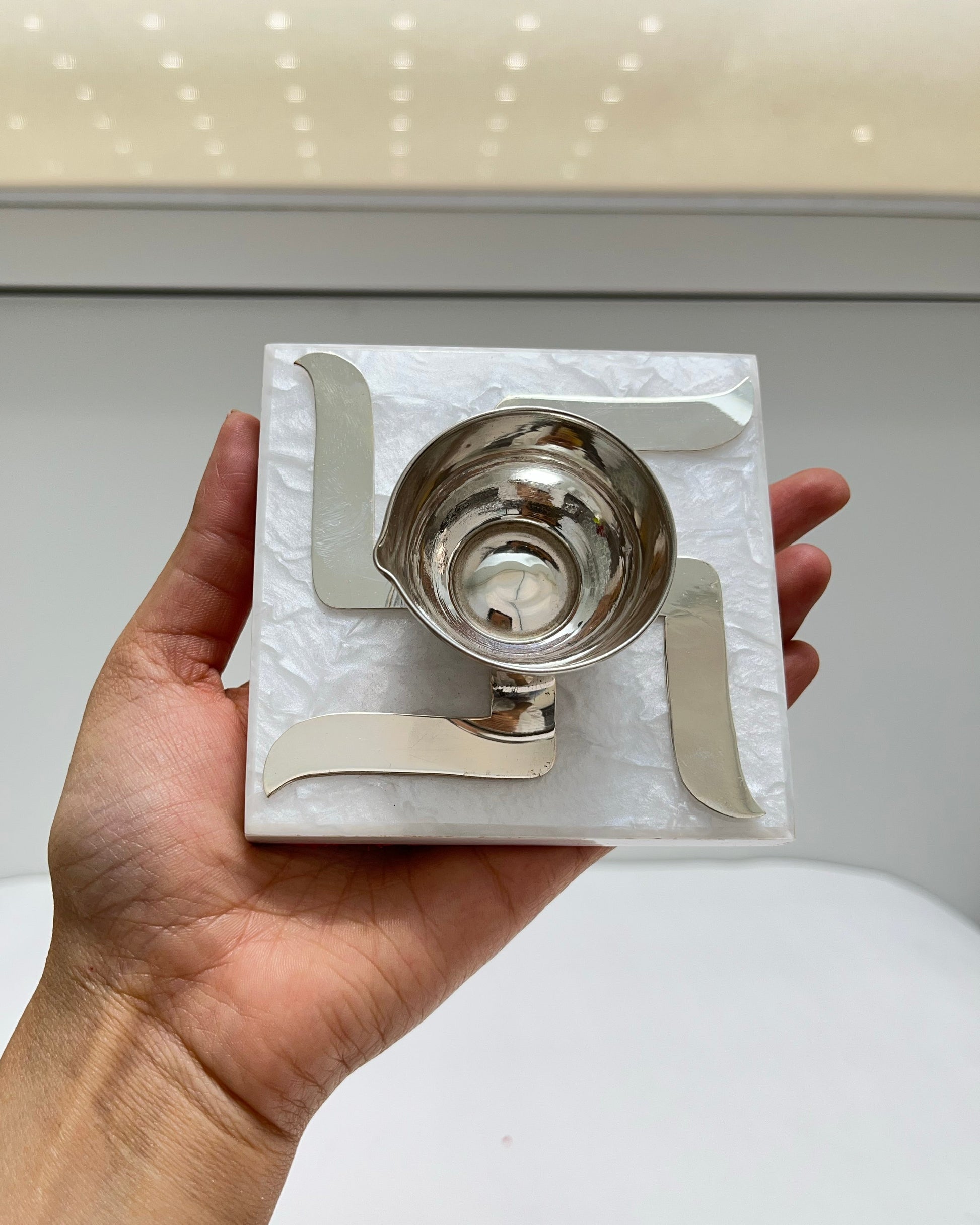 Swastik Marble Diya | 925 Sterling Silver